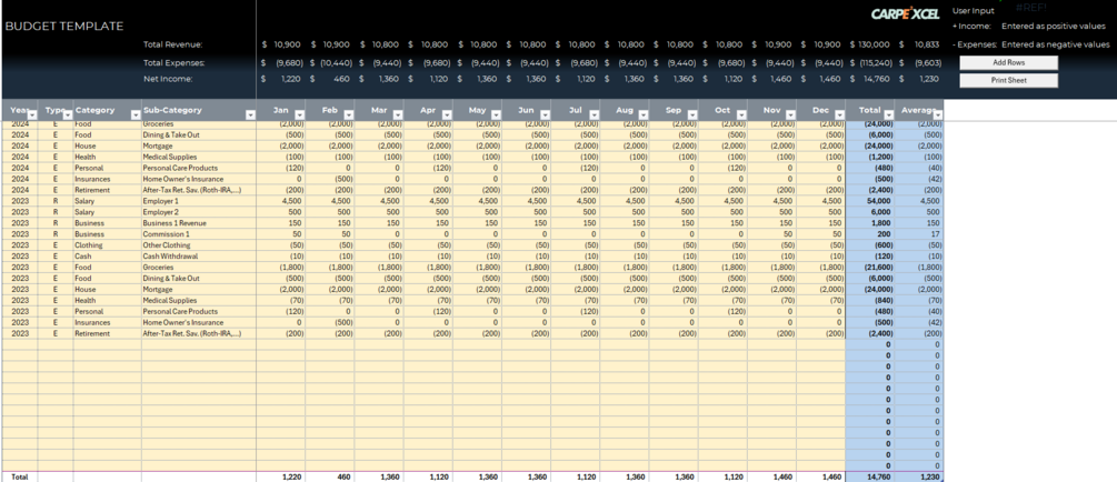 Free Excel budget template including one worksheet. The file includes two macros.